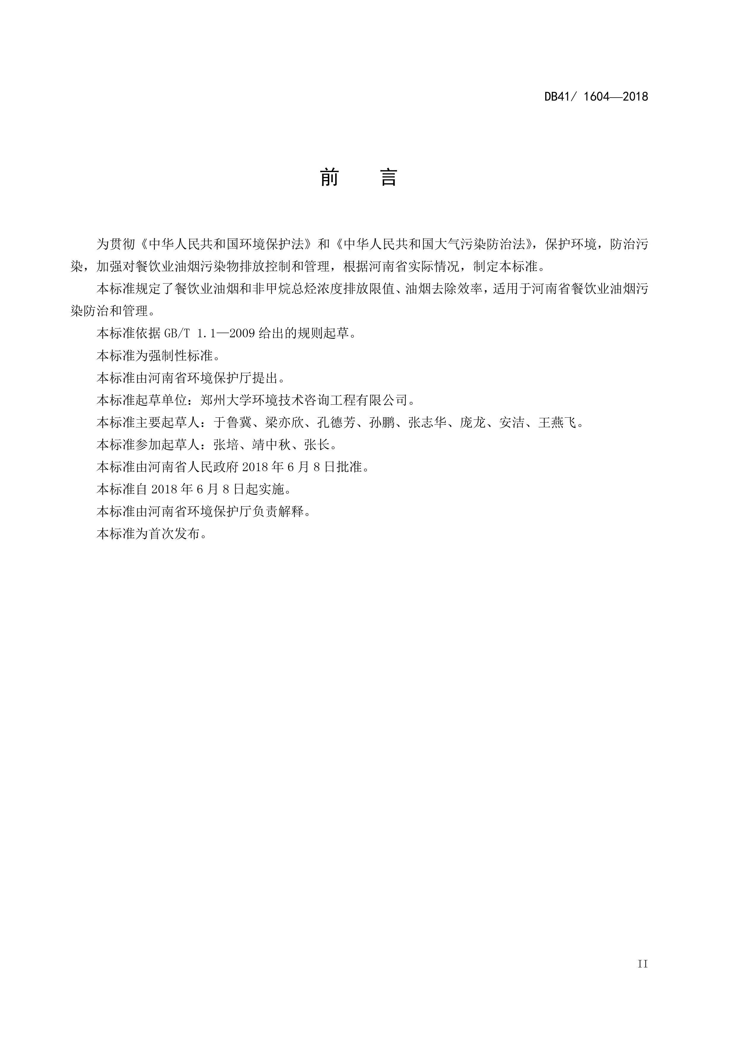 DB41/1604-2018《餐饮业油烟污染物排放标准》